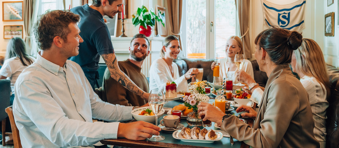 Riemen oder Skulls? Ruderbrot oder Achterl? Das Bootshaus ist immer die richtige Entscheidung. Bei uns trifft Rudersport auf Gastronomie, Alte Donau auf neue Ideen und Ausflugsziel auf Genussmomente. Warum gerade Rudern? Der Rudersport hat in unserer Familie einen fixen Platz. Immerhin sind zwei unserer Söhne begeisterte Leistungsruderer, unter anderem U23-WM-Gold- und gemeinsam Bronzemedaillen-Gewinner. Das Bootshaus an der Alten Donau bietet für uns die einmalige Gelegenheit, zwei große Leidenschaften miteinander zu verbinden: Das Rudern und Gastgeber sein. Kompromisslose Qualität & unvergleichliches Ambiente in Wien - dafür stehen wir. Fish & Chips, Calamari Fritti und die besten Sundowners an der Alten Donau laden zum „Anlegen“ ein. Ob am 2er, 4er oder 8er Tisch – da kommt Urlaubsstimmung auf! Ganz besonders, wenn wir unsere Lieblingsfarbe präsentieren: Sonnenuntergang!